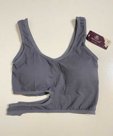 نیمتنه به شدت جذاب بغل باز مناسب سایز 36 تا 40 با کاپ ثابت تک رنگ طوسی